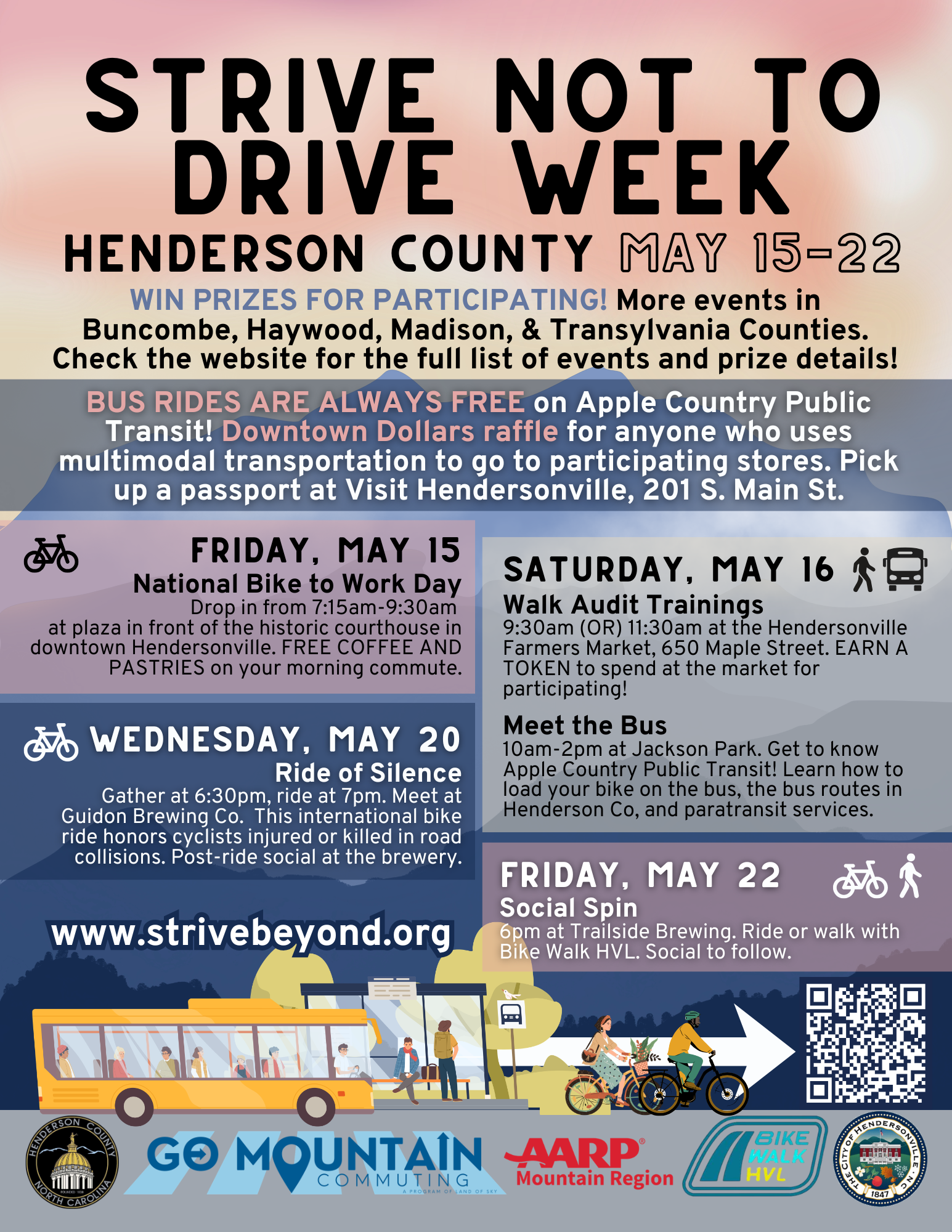 This event is hosted as a part of Strive Not to Drive Week, May 15-22. WIN PRIZES for participating! For a full list of events and prize details, visit https://strivebeyond.org/strive/